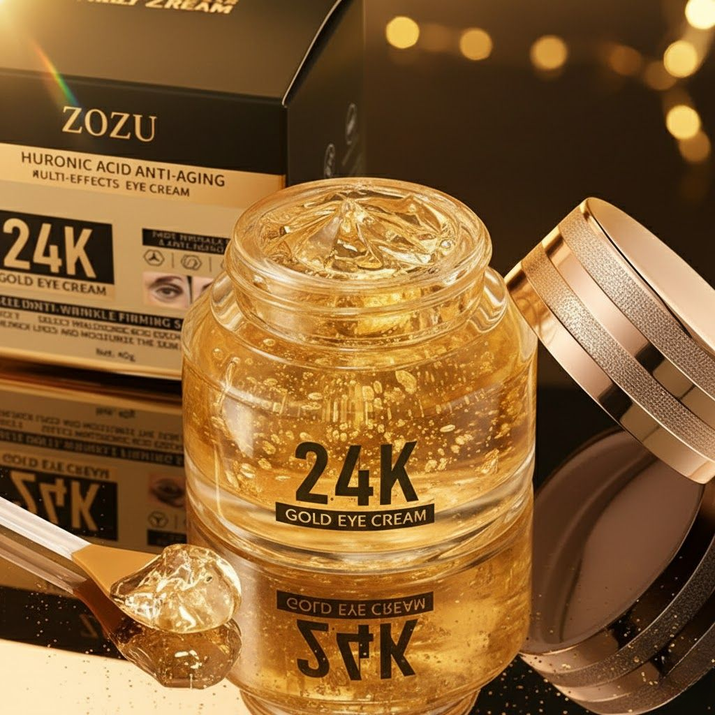 Rejuvenate your eyes with this luxurious cream that combines 24k gold and hyaluronic acid, offering immediate hydration and combating dark circles and puffiness for a youthful glow.